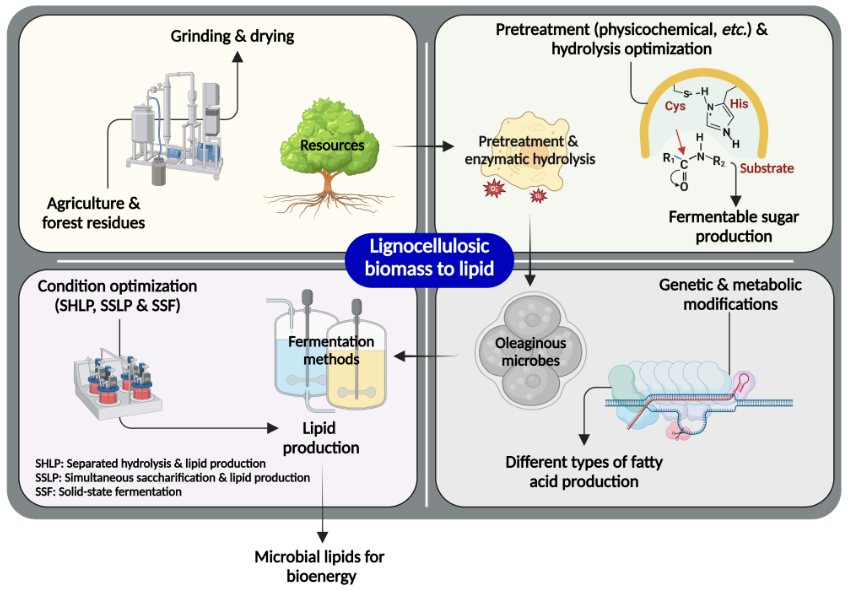 14. New trends in microbial lipid-based biorefinery for fermentative bioenergy production from lignocellulosic biomass